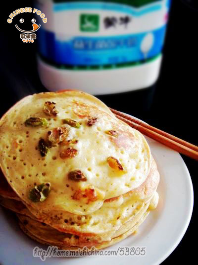及以下步骤:不沾锅烧热后,舀一勺到锅中。 小火加热至表面有小泡出现。 放入一些葡萄干。 然后翻面煎20秒左右即可。 再过滤一下面糊这样不会有面疙瘩。 准备一个汤匙。 不沾锅烧热后,舀一勺到锅中。 小火加热至表面有小泡出现。 放入一些葡萄干。 然后翻面煎20秒左右即可。