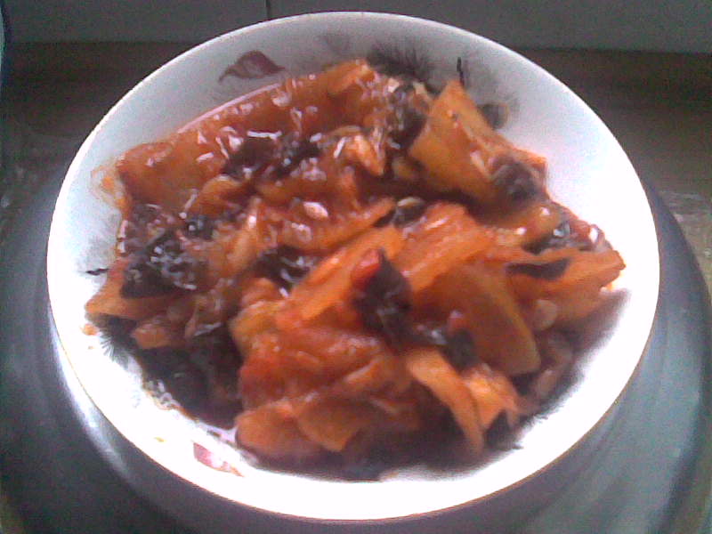 1、将冬瓜切成薄片、木耳、洋葱切成丝。 2、油热后倒入洋葱丝翻炒。 3、然后倒入番茄酱(我用的是块状的番茄酱,如买不到用番茄切成块),加少许盐爆炒, 4、倒入木耳丝翻炒,最后放少许虾皮翻炒,即可出锅 方法很简单,味道也不错,由于自己在减肥,所以自创这个菜,食材都是利于减肥的,我很喜欢,希望大家也喜欢!