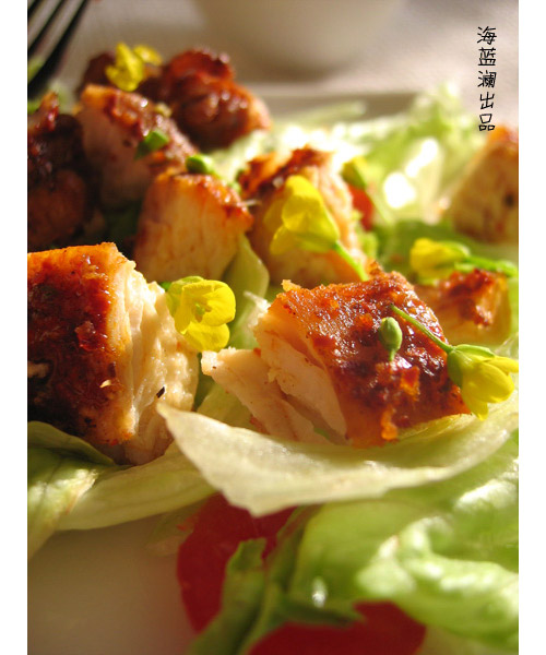 总是被装盘漂亮的西餐所吸引,新近常吃鸡肉,于是变个花样把意式烤鸡肉沙拉配橄榄油黑醋改动了一下,变成了下面的东东。之所以还叫意大利烤鸡肉沙拉,是因为这道菜里依旧包含意式元素--意式调味汁。 对美食文化感兴趣的人应该知道,意大利人对于传统的美食是比较较真儿的,基本都是原封不动的按传统菜谱进行操作,绝不尝试改动。 但咱不开正宗的意大利餐厅,在家diy不碍事的吧,呵呵,手边有啥材料就用啥材料吧。千变万化的菜谱改动,让我们这群业余的美食爱好者,能够不断的挖掘更多的惊喜搭配,乐此不疲。 美味可口的调味汁是做沙拉的精华,沙拉好不好吃,全靠调味汁了。意大利菜讲究原汁原味,清新淡雅的调味汁可使味道更上一筹。意式调味汁,没有人知道哪款是最正宗的,变幻的原料,只要你搭配合理,就能将美食渲染的淋漓尽致。 橄榄油是意式油醋汁里必不可少的一味材料。橄榄油一般是分为初榨橄榄油和纯橄榄油。初榨橄榄油,一般为了不损害橄榄油的风味和香气,通常是不经加热而直接食用的,而纯橄榄油主要是加热烹调。 本道沙拉选用了初榨橄榄油与意式沙拉酱调汁。意式沙拉酱里含有白葡萄酒醋、香草及罗勒等,加上橄榄油调成汁,口感很特别。