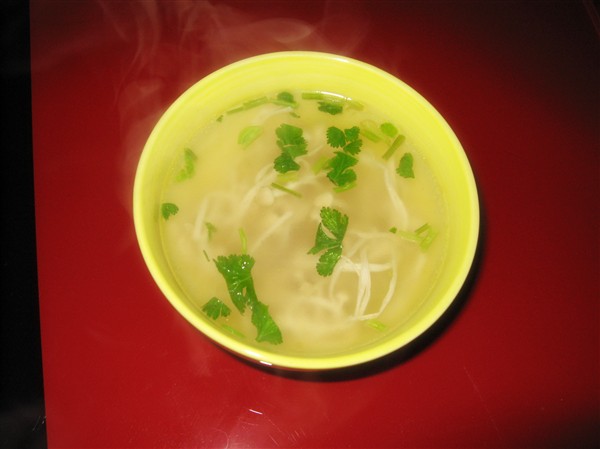制作美食鲜香金针汤。