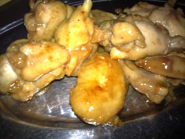 3、烧热油锅,将腌好的鸡翼放入砂煲里,盖1分钟。在煲盖边放3茶匙的清水,让鸡翼在煲里慢慢加热3分钟即可上碟了!