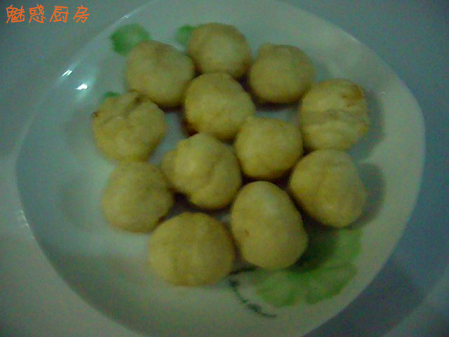 3、待汤圆滚炸制发黄即可成盘取出食用。