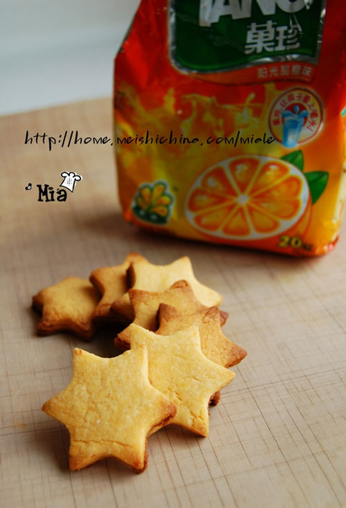 去年的时候,为了招待妈妈伙伴的小孩们,买了一大包果珍,泡了一次后,一直置放在角落里。春节期间翻出,才注意到它的存在,哈~,今天就用果珍来做道小饼干吧~~酸酸甜甜的,别有一番风味哦!