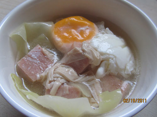 午餐肉包菜鸡蛋汤美味诠释: