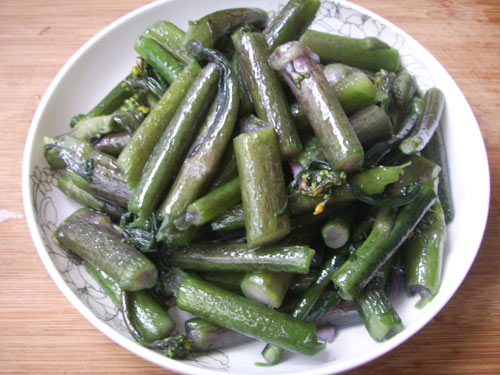 今天上一个做法非常简单但很好吃的蒜茸炒红菜苔。菜苔也叫菜心,据说是武汉的一个名菜。而婆婆家也种有一小片这种红菜苔,每次过年回家时,总能吃到现摘再炒的菜苔,非常爽甜。