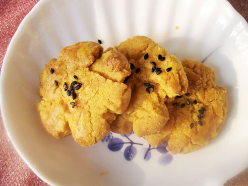 及以下步骤:1、将20克鸡蛋液放入盆中,加入花生油、糖,搅拌均匀。 将玉米面和泡打粉、小苏打混合,过筛,将混合物筛入液体中。 1、将20克鸡蛋液放入盆中,加入花生油、糖,搅拌均匀。 将玉米面和泡打粉、小苏打混合,过筛,将混合物筛入液体中。 1、将20克鸡蛋液放入盆中,加入花生油、糖,搅拌均匀。 将玉米面和泡打粉、小苏打混合,过筛,将混合物筛入液体中。 拌成面团。 用手捏一小块面,团成小球,用手指捏扁(拍容易厚薄不均)。 放满烤盘后,刷一层鸡蛋液,撒适量黑芝麻。 烤箱预热180度,放入烤箱,烤15分钟即可。