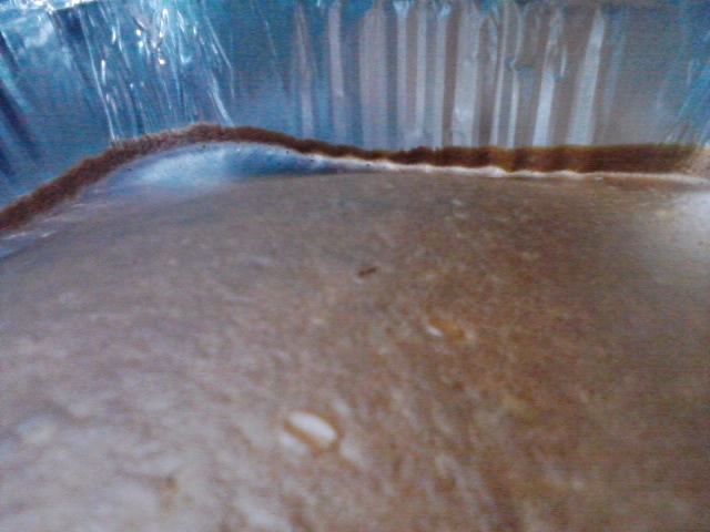 5、倒进合适的蛋糕容器里,放进电烤箱约 25分钟。