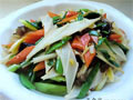 7、最后再把蒜苗放入,加一点盐,鸡精,香油炒匀即好。