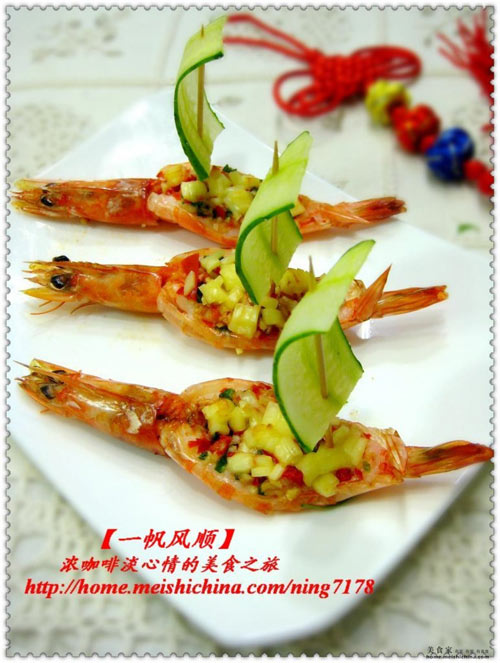 很简单的一道菜,蒜蓉芝士烤虾加了个黄瓜帆,造型还是挺可爱的,小朋友应该会喜欢吧~~