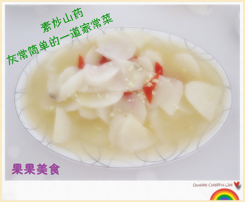 及以下步骤:将红椒切片,蒜切成末,也可根据需要加两片生姜,冬季做菜放些生姜可驱寒。 将山药去皮,若此时山药变色,迅速将其放入盐水中浸泡一分钟。 将红椒切片,蒜切成末,也可根据需要加两片生姜,冬季做菜放些生姜可驱寒。 将山药去皮,若此时山药变色,迅速将其放入盐水中浸泡一分钟。 将红椒切片,蒜切成末,也可根据需要加两片生姜,冬季做菜放些生姜可驱寒。 将山药去皮,若此时山药变色,迅速将其放入盐水中浸泡一分钟。 将红椒切片,蒜切成末,也可根据需要加两片生姜,冬季做菜放些生姜可驱寒。 锅中放少许的油,将花椒放入后,待其变黑后捞出,火关小将山药倒入,随后放入红椒,进行翻炒。 加入一小碗水,最好是温水,随后放入盐、鸡精,翻炒后盖上锅盖。 在煮的过程中不要着急,可以再加入些小葱,切成碎末,待用,这是我突然想到的一点,因为总觉得没有绿色不是很好看。