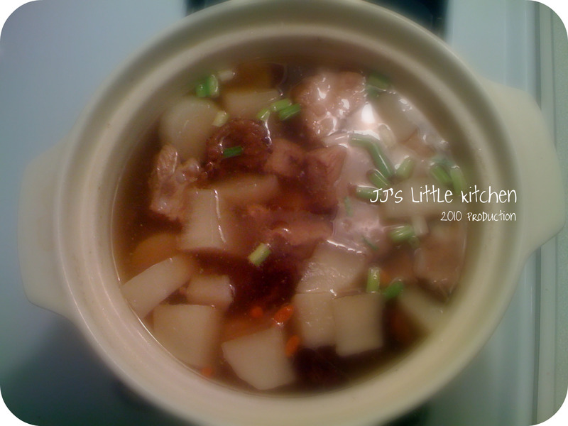及以下步骤:清洗排骨。排骨和姜放在冷水里煮。水沸了火,清理排骨。 沙锅中装入清水。水沸了后,加入排骨,萝卜,姜,加料酒。 焖40 分钟。 清洗排骨。排骨和姜放在冷水里煮。水沸了火,清理排骨。 沙锅中装入清水。水沸了后,加入排骨,萝卜,姜,加料酒。 焖40 分钟。 清洗排骨。排骨和姜放在冷水里煮。水沸了火,清理排骨。 沙锅中装入清水。水沸了后,加入排骨,萝卜,姜,加料酒。 焖40 分钟。 清洗排骨。排骨和姜放在冷水里煮。水沸了火,清理排骨。 沙锅中装入清水。水沸了后,加入排骨,萝卜,姜,加料酒。 焖40 分钟。 加入枸杞,煮5~10分钟。 加盐,胡椒粉,葱。