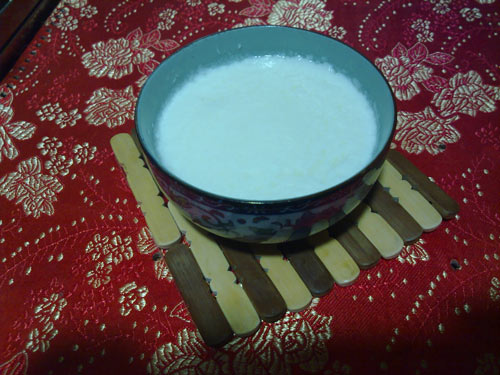 3、然后放置到奶的温度约为45度(用手测,比手温高一点即可)。