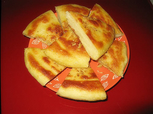 外面卖的发面饼往往比较厚,没什么味道,自己在家里做时不要太厚,有层次感即可。这样子既可方便食用,又可以增加美食的香味。