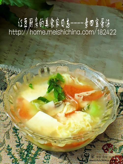 素四宝蛋汤烹饪方法 图片大全及制作所需厨具设备是网友推荐小编整理所得,是网友的分享推荐,是饮食文化的资源共享,中华美食文化是中华文明的具体践行,美食素四宝蛋汤烹饪制作就是在传承中华文化。