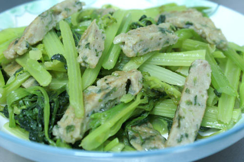 美味香芹炒鲮鱼肉饼制作步骤: