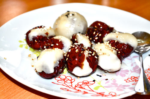 之所以叫糯米包枣,是因为做的实在有点其貌不扬,不过第一次尝试要有所谅解哈,下次继续努力,这糯米枣真是看着简单实际操作很难阿,尤其是去枣核那会儿,头都大了~ 纪念下自己的第一次糯米枣