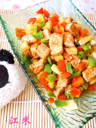 水豆腐(一块) / 青菜椒(1个) / 红菜椒(1个) / 去皮菠萝(4/1)