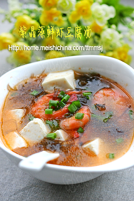 紫晶藻鲜虾豆腐汤烹饪方法 图片大全及制作所需厨具设备是网友推荐小编整理所得,是网友的分享推荐,是饮食文化的资源共享,中华美食文化是中华文明的具体践行,美食紫晶藻鲜虾豆腐汤烹饪制作就是在传承中华文化。
