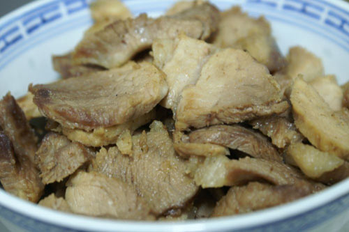 6、将猪肉洗干净,蒸熟。放凉后切片。