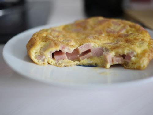 及以下步骤:鸡蛋打散,加入午餐肉丁、盐、胡椒粉搅拌均匀。 午餐肉切丁备用。 鸡蛋打散,加入午餐肉丁、盐、胡椒粉搅拌均匀。 午餐肉切丁备用。 鸡蛋打散,加入午餐肉丁、盐、胡椒粉搅拌均匀。 午餐肉切丁备用。 鸡蛋打散,加入午餐肉丁、盐、胡椒粉搅拌均匀。 小煎锅锅底均匀涂上一层油,将混合好的蛋液倒入锅中。 一面煎好后将蛋饼翻面,两面都煎好以后即可出锅。 冲一杯蜂蜜柚子茶搭配,一顿营养早餐就做成了。