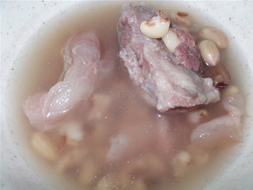 及以下步骤:材料:鲜猪脚筋,瘦肉,眉豆,花生,红枣,陈皮,姜。 煮开水将材料飞水,去杂质。 材料:鲜猪脚筋,瘦肉,眉豆,花生,红枣,陈皮,姜。 煮开水将材料飞水,去杂质。 材料:鲜猪脚筋,瘦肉,眉豆,花生,红枣,陈皮,姜。 煮开水将材料飞水,去杂质。 捞起,冲洗干净。 眉豆,花生,陈皮浸泡后洗干净 全部汤料加12碗水(约1000毫升),大火煲开15分钟,改小火煲2小时,下盐调味(可不放盐)。 胶原质非常丰富的猪脚筋汤 强健筋骨。