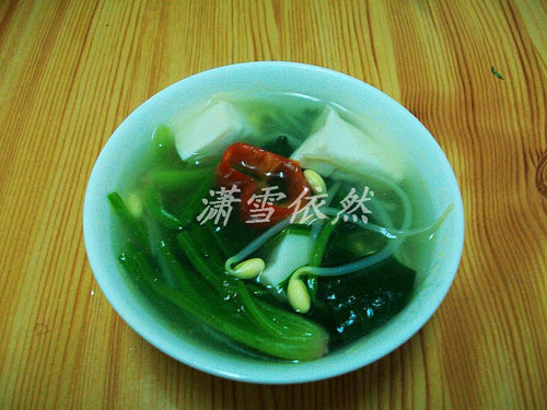 及以下步骤:锅中烧两碗水,水开后,倒入豆芽 菠菜洗干净,从中间切一刀,豆腐切小块,豆芽洗干净,挑去豆皮 锅中烧两碗水,水开后,倒入豆芽 菠菜洗干净,从中间切一刀,豆腐切小块,豆芽洗干净,挑去豆皮 锅中烧两碗水,水开后,倒入豆芽 菠菜洗干净,从中间切一刀,豆腐切小块,豆芽洗干净,挑去豆皮 锅中烧两碗水,水开后,倒入豆芽 豆芽煮3分钟左右,倒入豆腐块 豆腐块搅拌均匀,煮1分钟左右 加盐调味,即可出锅