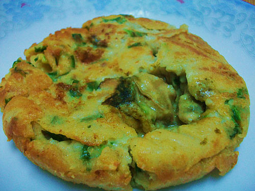 及以下步骤:倒入一勺面糊,轻轻晃动锅子,稍微凝固后,再撒上一点蒜末。 估计一面煎黄之后,用筷子和铲子配合翻面,煎另一面,翻面要小心哦,很容易烂。 煎至两面金黄,即可出锅啦……很美味哦,尝尝吧。 蒜切蒜末。 打入鸡蛋,打散,搅拌均匀,加盐。 撒上葱花,倒入蚝仔,把面糊搅打均匀。 小煎锅倒上油,撒一点蒜末爆香。 倒入一勺面糊,轻轻晃动锅子,稍微凝固后,再撒上一点蒜末。 估计一面煎黄之后,用筷子和铲子配合翻面,煎另一面,翻面要小心哦,很容易烂。 煎至两面金黄,即可出锅啦……很美味哦,尝尝吧。