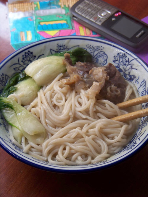 米粉不能久煮,煮开后即可放入肺片和白菜,调好味立马出锅。