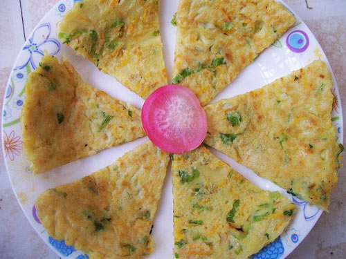 及以下步骤:土豆去皮,蔬菜洗净备用。 土豆用擦子擦成细丝。 土豆去皮,蔬菜洗净备用。 土豆用擦子擦成细丝。 土豆去皮,蔬菜洗净备用。 土豆用擦子擦成细丝。 胡萝卜擦成细丝,生菜叶切丝。 三丝混合,打入一个鸡蛋。 加适量盐,放入适量面粉,倒入适量水,搅成能缓慢流动的糊状。 平锅放适量油,油热后舀入面糊,转动锅子形成厚薄均匀的饼,煎至两面金黄即可。