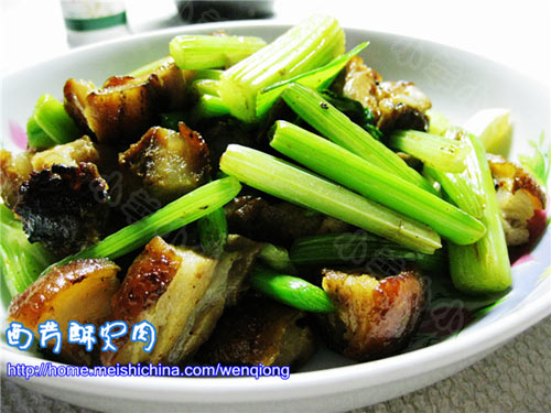 蒜苗(两 根) / 西芹(一 颗) / 酥皮肉(300 克)