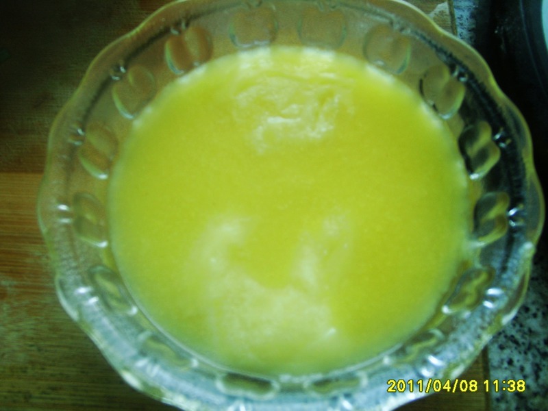 知道我做的玉米糊糊为什么没有疙瘩了吗?细心的人,一定发现了,就是凉水冲调玉米面,下锅后搅,这就是窍门,呵呵,也没什么难的,对吧?