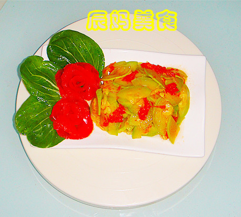 及以下步骤:番茄削皮,把番茄皮卷成玫瑰摆盘装饰,用青菜叶衬托 西葫芦洗净切片、番茄、青菜洗净备用 番茄削皮,把番茄皮卷成玫瑰摆盘装饰,用青菜叶衬托 西葫芦洗净切片、番茄、青菜洗净备用 番茄削皮,把番茄皮卷成玫瑰摆盘装饰,用青菜叶衬托 西葫芦洗净切片、番茄、青菜洗净备用 番茄削皮,把番茄皮卷成玫瑰摆盘装饰,用青菜叶衬托 放炒锅,油热后放入葱花、花椒爆香 放入切好的西葫芦翻炒 西葫芦炒至5成熟加入切好的番茄一起炒,加入姜粉,9成熟时加入根据个人口味加入食盐、鸡精,出锅