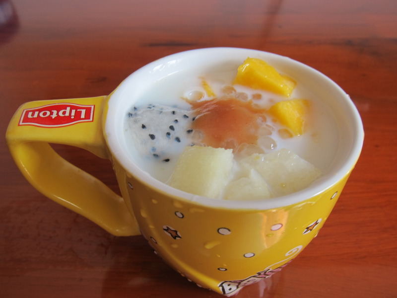 5、西米是提前煮过的,水果可以选自己喜欢的,我用了芒果,火龙果和香梨。