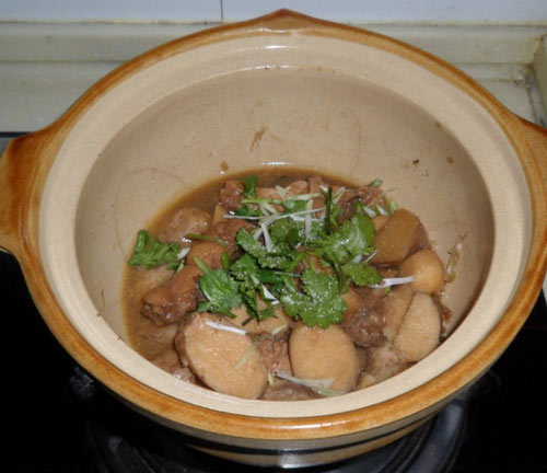 及以下步骤:添水,倒入砂锅中。中火煮至沸腾后,改小火煮5分钟。 加入香菜,既可以提味,又可以点缀一下色彩。 先来张主材图片吧。 鸡小腿洗干净后,记得每个用刀背拍几下,先给它松松骨吧. 将葱和蒜分别切片,然后与黄豆酱一起加入鸡小腿中腌制10分钟。 腌制鸡小腿的时间,我们可以给芋头去皮,改刀成块状。 锅中放入适量的花生油,再加入鸡小腿煸炒。 然后,加入芋头一起翻炒。 添水,倒入砂锅中。中火煮至沸腾后,改小火煮5分钟。 加入香菜,既可以提味,又可以点缀一下色彩。