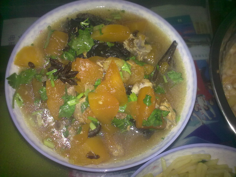 5、炖了这么久,半天也过去了,可以吃饭了,出锅前加入切碎的香菜,即可。