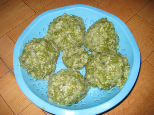 制作美食榆钱窝头。
