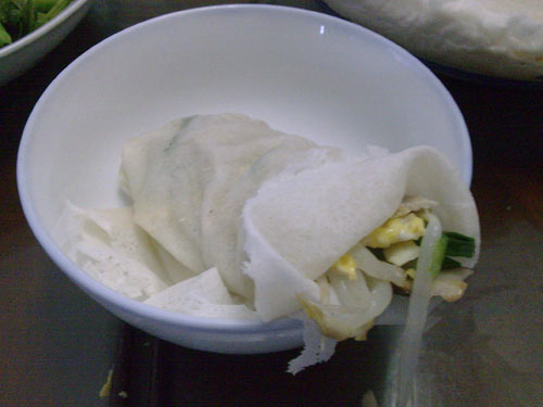 及以下步骤:包上簿饼皮就可以吃了 豆芽摘去头尾洗净 韭菜摘去头尾洗净切段 豆芽摘去头尾洗净 韭菜摘去头尾洗净切段 猪肉洗净切丝 鸡蛋摊成蛋皮切丝 猪肉炒熟,加盐调味 炒好的猪肉中加入豆芽,韭菜,鸡蛋炒熟 包上簿饼皮就可以吃了