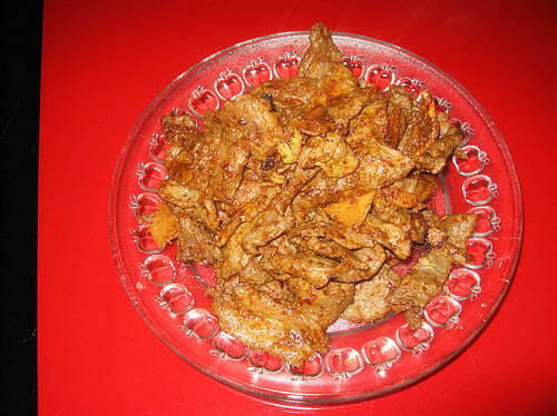 7、最后待肉9成熟时,转大火至全熟、锅干。