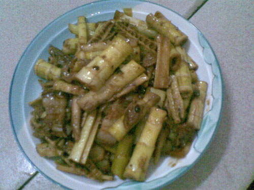 及以下步骤:最后起锅前加入调好的生粉即可。 猪腩洗净,竹笋去老节,姜切丝,蒜拍碎。 猪腩肉切片直接下锅翻炒至出油后加入酱油。 猪腩洗净,竹笋去老节,姜切丝,蒜拍碎。 猪腩肉切片直接下锅翻炒至出油后加入酱油。 加入姜丝和蒜碎翻炒,再加入一小碗水,盖上盖子焖约8分钟。 趁焖肉时间把文笋拍扁切成段,豆豉剁碎。 把焖好的肉装起,竹笋入锅并加入豆豉翻炒一会再加入一碗水中水焖约10分钟。 将焖好的肉与笋翻炒一下再盖上盖子焖5分钟。 最后起锅前加入调好的生粉即可。