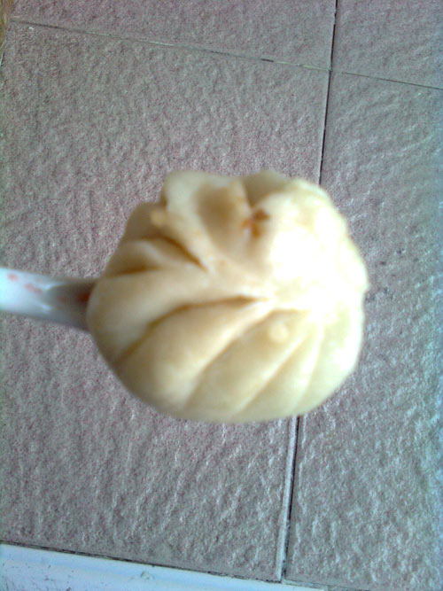 7、中间放一点馅,边上打成褶子。这样一个小包子的生呸就好了