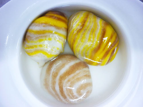 雨花汤团是仿照南京的雨花石做成的汤圆。看上去有点以假乱真的感觉,赏心悦目。