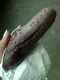 这几天大猪先生不在家,去外地进货了。他不在家,我也懒得动手。生活不规律,饿了啃泡面。结果,昨晚给我华丽丽的饿的要死。在家翻箱倒柜,什么都没找到,就半袋面粉。纠结了半天,还是放回去了。我不会做任何关于面粉的东西。。。。。 早上晶晶给我送来一些紫薯(还是晶晶对我好)。我素懒人,于是,洗干净丢微波炉烤了。