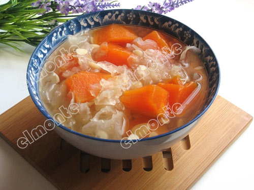 及以下步骤:雪耳用水泡发,去根蒂,洗干净。 南北杏,川贝用水泡30分钟。(怕有防腐剂啥的。) 雪耳用水泡发,去根蒂,洗干净。 南北杏,川贝用水泡30分钟。(怕有防腐剂啥的。) 雪耳用水泡发,去根蒂,洗干净。 南北杏,川贝用水泡30分钟。(怕有防腐剂啥的。) 把雪耳,南北杏,川贝,冰糖放小汤锅里,加水烧开,转小火煲1个小时。 木瓜去皮,籽和里面的白筋(这个苦),切小块。(这个木瓜好甜,边切边吃了。) 放入木瓜继续煲30分钟即可。 清润养颜,化痰止咳呢。