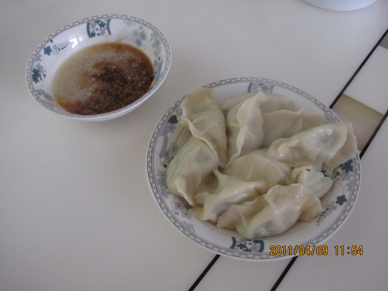 6、水开,下入水饺,开吃了。