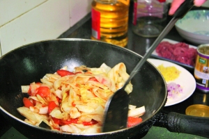 制作美食番茄炒包菜。