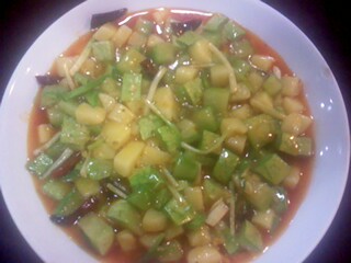 本来是准备加黄瓜的!无赖,被同事催促要吃午饭了!没办法,只用了土豆和南瓜。《注意开始的时候可以先把土豆和南瓜先用开水煮一下,那样会快点!》当然如果加黄瓜的话!黄瓜就不用开水煮了。直接在第5步加如黄瓜就可以了!接下来就开吃吧!嘿嘿!