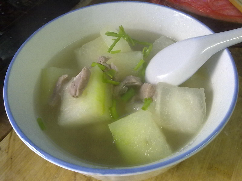 今天想来一碗清淡一点的,前天自己还腌制了咸肉,自己做的比买来的咸肉好吃一百倍,比加了味精还鲜。那个好吃啊,哈哈。所以来碗冬瓜瘦肉汤吧,清清肠。
