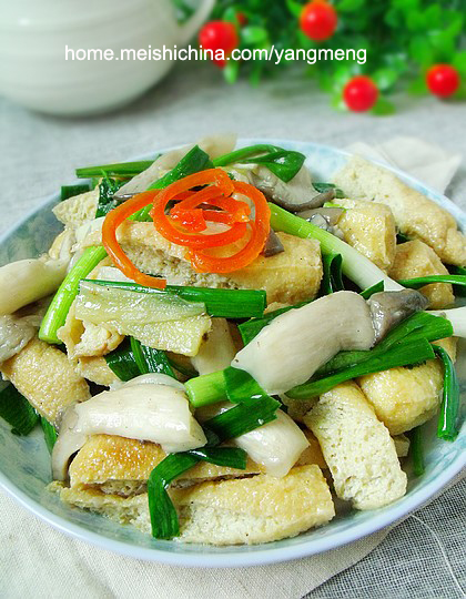 蒜苗蘑菇炒豆腐泡美味诠释: