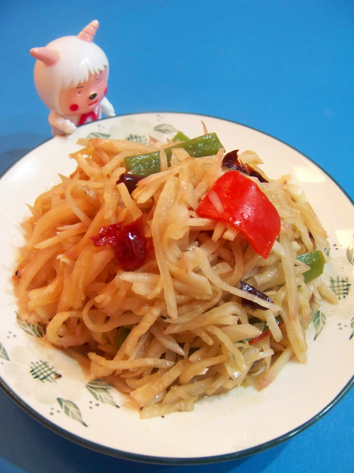 及以下步骤:1。 备好萝卜丝, 青红椒。 2。 备好作料,干红椒,花椒,姜蒜。 1。 备好萝卜丝, 青红椒。 2。 备好作料,干红椒,花椒,姜蒜。 1。 备好萝卜丝, 青红椒。 2。 备好作料,干红椒,花椒,姜蒜。 3。 锅内爆香青红椒,干辣椒,花椒。 4。 放入萝卜丝翻炒。 5。待萝卜变软,加入盐一小勺。 6。 起锅时加入适量的陈醋。
