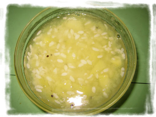 7、锅里放水,放入醪糟煮开。